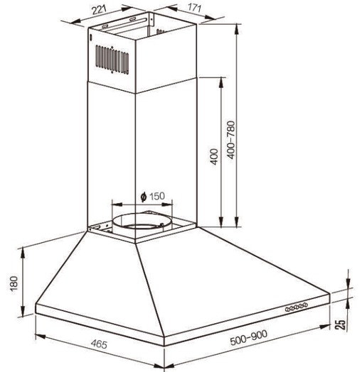 | Box Cooker Hoods | ICONBOX90.1 | DIMENSIONAL DRAWING |