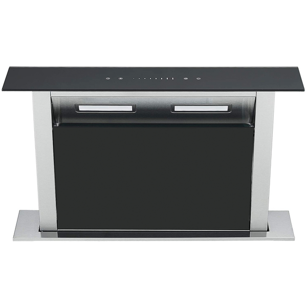 Designed for modern kitchens, the downdraft extractor seamlessly combines style and performance. With a sleek stainless steel and black glass finish, it complements any contemporary kitchen design while offering powerful extraction. The motorised lift mechanism ensures the extractor discreetly rises from the worktop when needed and retracts when not in use, maintaining a clean and uncluttered space. Ideal for use with gas hobs, this extractor efficiently removes cooking vapours and odours, keeping the kitchen fresh.