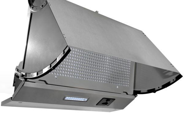 Discover discreet yet effective kitchen ventilation with our integrated cooker hood. Designed to blend seamlessly into your cabinetry, it features a silver-painted finish with a full front flap for easy fitting of a décor panel, ensuring a cohesive look in any modern kitchen.