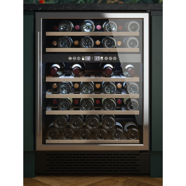 Upgrade your wine storage with this spacious stainless steel wine cooler, offering a perfect blend of modern design and practical functionality. With a 51 bottle capacity, it provides generous space to keep your collection organised and easily accessible. The sleek stainless steel finish, combined with UV protected glass, ensures a stylish appearance while safeguarding your wine from harmful sunlight to preserve its quality.